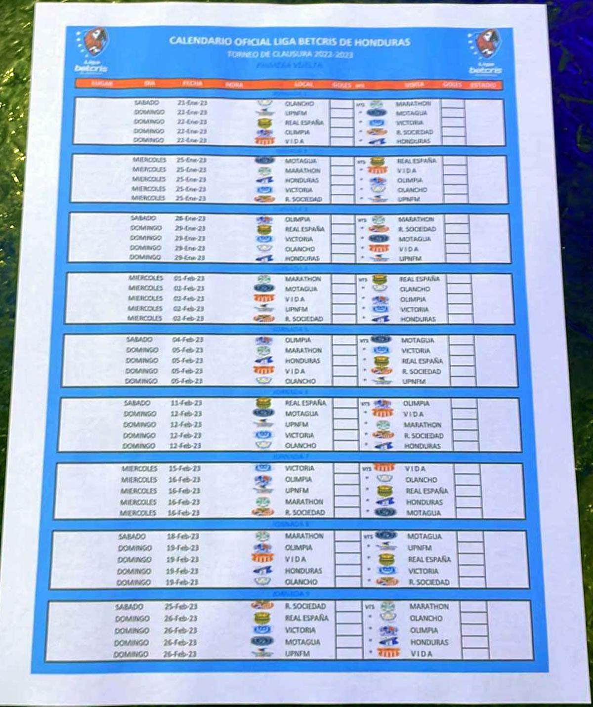 Las Autoridades De La Liga Nacional De Honduras Ratificaron, El Sábado 2 De Marzo, El Calendario De Partidos Correspondiente A La Segunda.